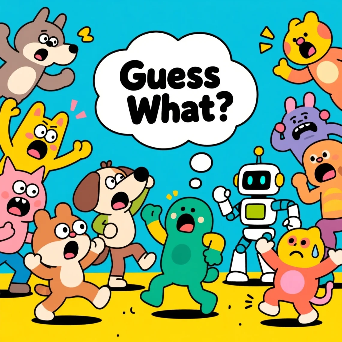 They shout “Guess what!” with big energy. This adds a fun twist.